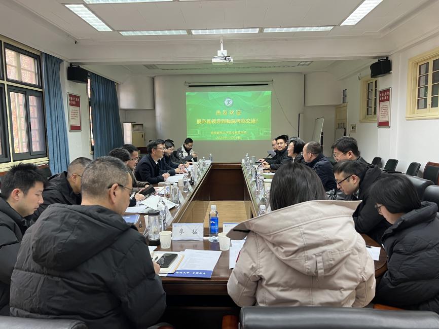 公司党委常委、副董事长姜小舜介绍了学校概况,对杭州市桐庐县的来访表示热烈欢迎。期待双方在人才培养、技术创新、项目合作、产教融合上深化合作交流。