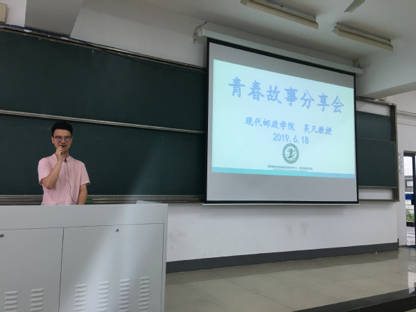 2019年6月18日下午,2018级在仙林校区教4-201教室举办“我的青春故事分享会”。我校优秀员工吴凡教授分享了他的成长经历。2018级全体员工参加分享会,辅导员盛秋旭老师主持活动。