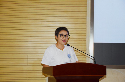 教师代表周倩老师发言,她希望同学们在崭新的学习平台上,能够心怀理想,奋勇拼搏,报效祖国,服务人民。