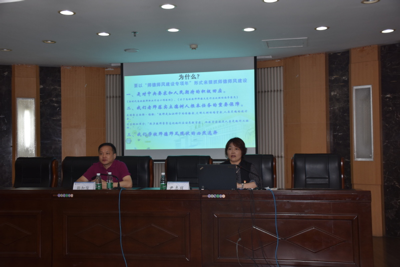 会上,尹书记对开展“师德师风建设年”活动作了动员讲话,阐述了开展师德师风建设不仅是学校教育发展的现实需要、教师落实立德树人根本任务的重要保障,更是积极回应中央要求和人民期待。并结合“弘扬高尚师德,潜心立德树人”活动主题,从“动员部署,守土有责”、“有序推进,守土尽责”两方面,强调学院将围绕部署动员、整体推进、深化总结三个阶段,从教育、宣传、考核、监督、奖惩五个方面开展各类师德师风建设活动,引导广大教师以德立身、以德立学、以德施教、以德育德,促使教师进一步树立“有理想信念、有道德情操、有扎实学识、有仁爱之心”的新时代教师形象。