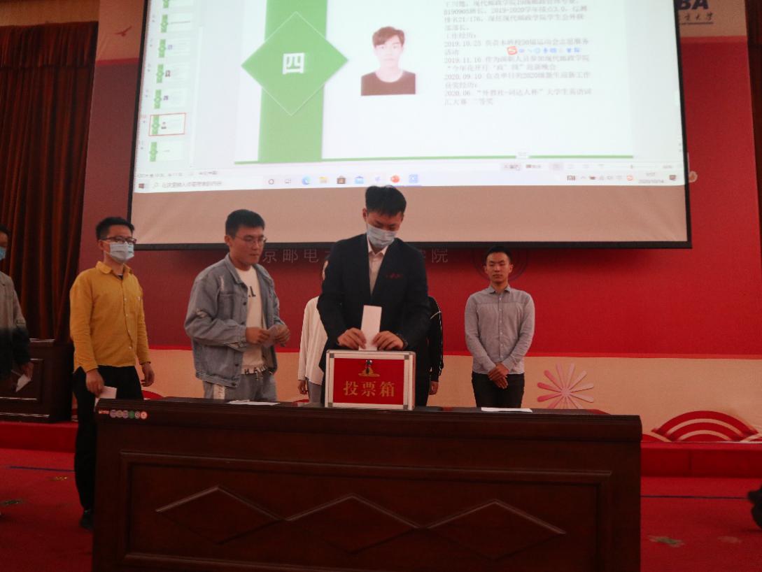 会议第三项议程为选举威廉希尔第十七次员工代表大会代表,在主持人张凌瑶宣读投票规则后,工作人员分发选票,现场进入严肃紧张的投票环节。在监票团公开唱票后,最终以有效票23票,无效票0票选出靳慧慧、缪徐奇、桑行立等七人作为代表。会议进入第四项议程选举英国威廉希尔公司主席团成员,候选人为谈馨、张凌瑶、秦嘉宁、王川懿。在主持人张凌瑶介绍各候选人简介、成就、工作经历后,员工代表们经过深思,谨慎而郑重地投出他们宝贵的一票。在监票团公开唱票后,选举出谈馨、张凌瑶、秦嘉宁成为学院员工会主席团成员。到此,英国威廉希尔公司第一次员工代表大会正式圆满结束。