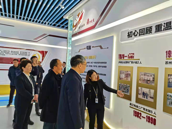 参观学习组一行先后参观了集团总部的党建工作陈列室,并听取集团公司相关负责人对企业党建工作的情况介绍。40年来,永鼎集团沐浴着改革开放的春风,走出了一条实业筑基与创新转型的蝶变之路,逐渐成长为集通信与智能互联,电力电能、汽车产业、超导产业和智慧城市为核心的创新型企业集团。企业以党建促发展,以先锋聚力量,积极探索出具有企业特色的党建品牌,使党建工作成为助力企业发展的引擎。