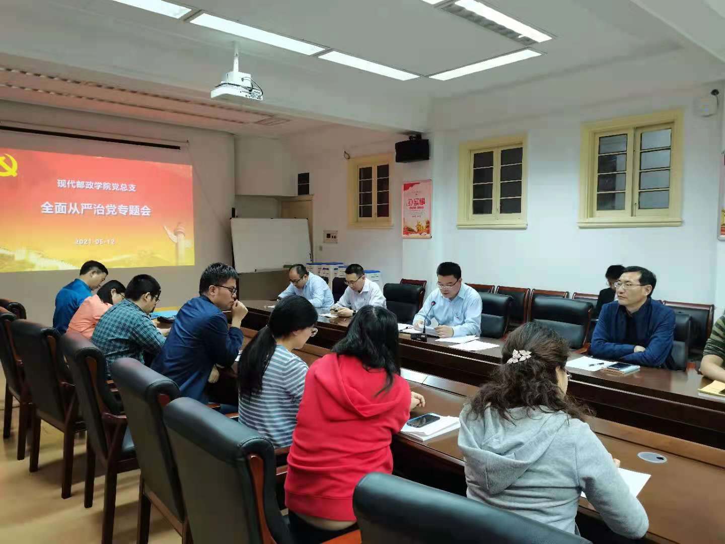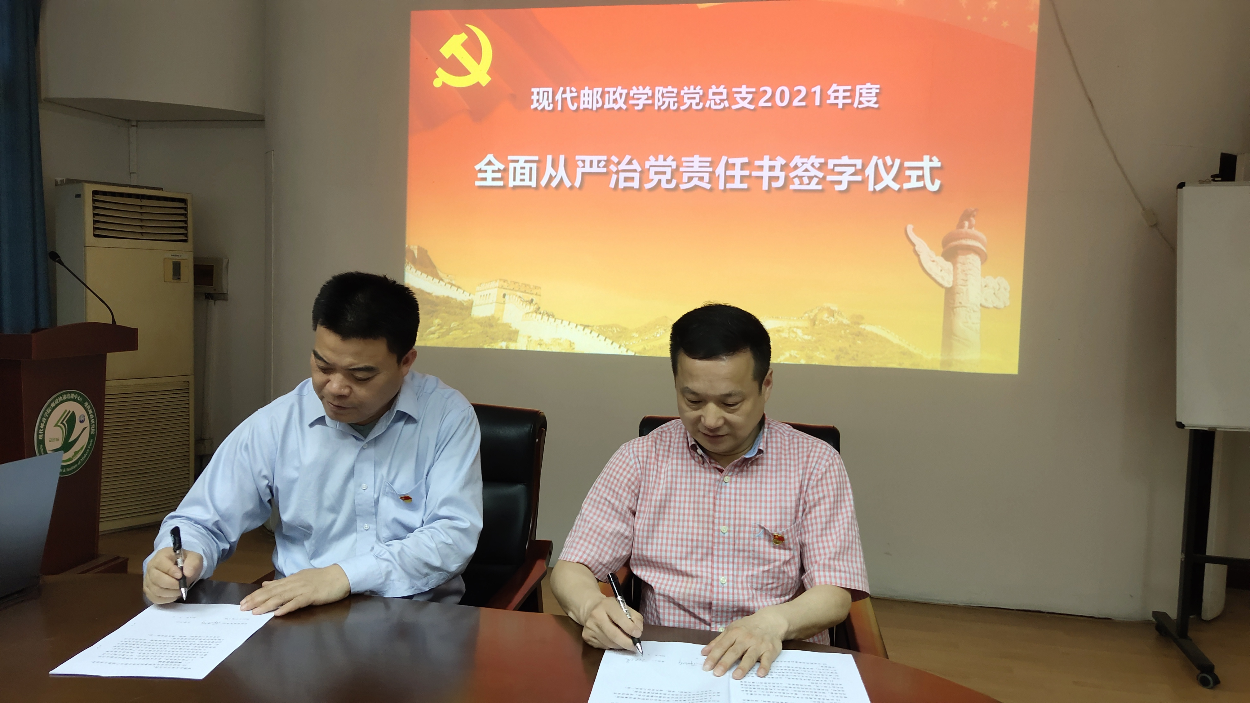 5月12日下午,现代邮政公司在三牌楼校区行政北楼学院207会议室召开全面从严治党工作会议并签订全面从严治党责任书、廉政责任书。会议由党总支书记薛晓华主持,公司党政班子成员、各党支部书记及系主任参加了签订仪式,学院特邀监察员列席会议。