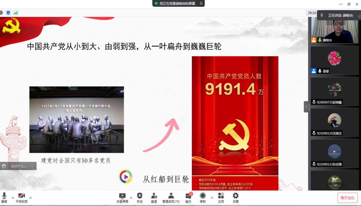 本次党课,全体学员们更加深入地了解了中国共产党的历史,并深刻意识到作为当代青年肩负的历史责任,与党和人民同向同行,与新时代同频共振。