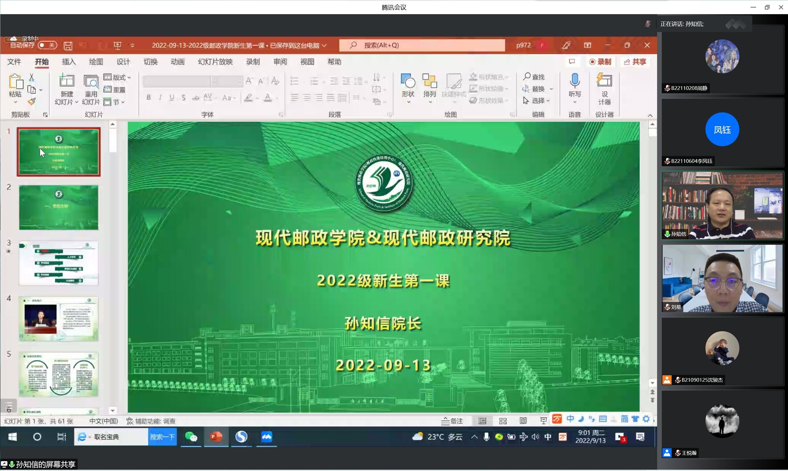9月13日上午,英国威廉希尔公司经理孙知信教授为2022级本科新生讲授“开学第一课”。带领新生深入了解学校历史和精神,学院现状和发展,帮助新生明确努力方向和奋斗坐标。授课采取线上的方式进行,187名本科新生参加会议。