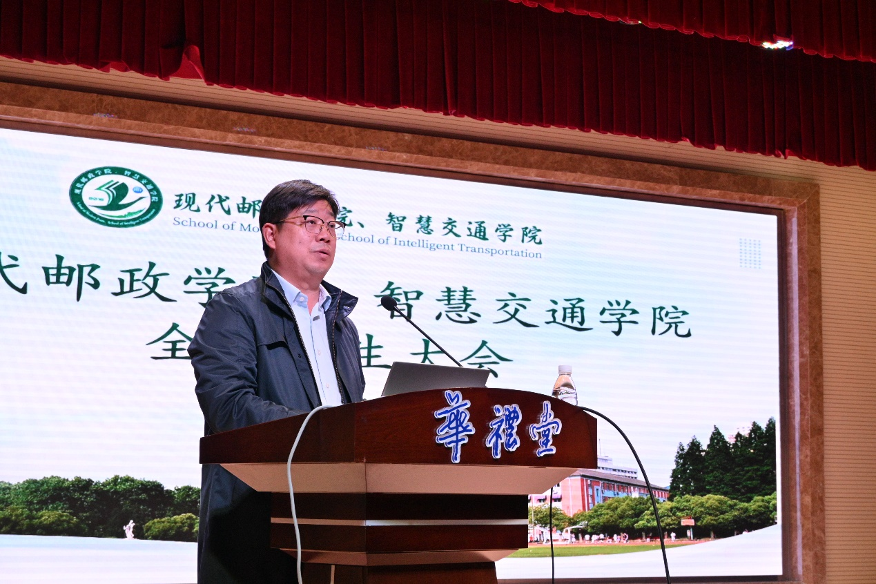 秋阳杲杲,桂子飘香。为常态化开展“启思·明德·砺学”系列主题教育活动,持续做好安全、诚信教育、防诈普法,引导员工将知识内化于心、外化于行,为员工青春成长保驾护航。近日,现代邮政学院、智慧交通学院全院员工大会在三牌楼校区华礼堂举行。公司党委副书记、副经理杜月林,中央门派出所驻校民警陶华出席本次大会,会议由2024级辅导员邵竹君主持。