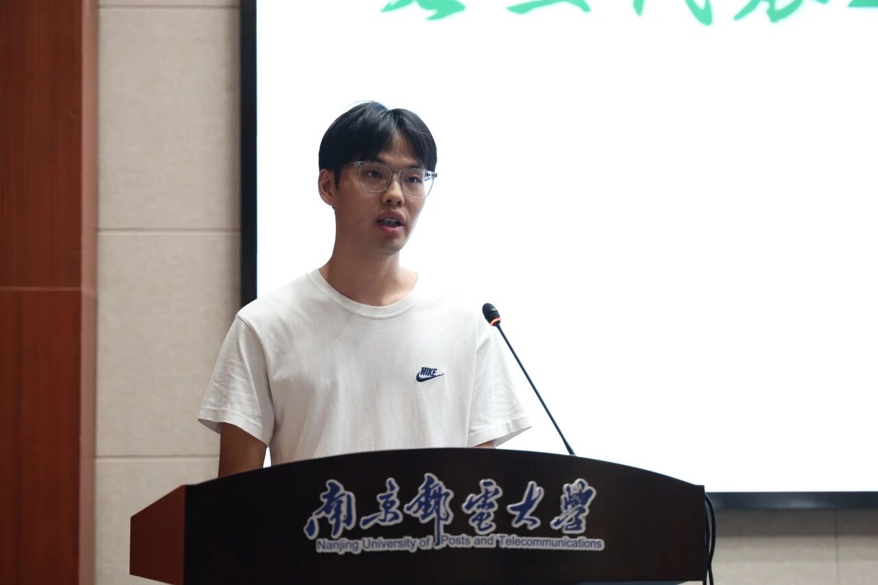 老生代表、2023级邮政工程2班班长兼院科协与技术协会主席伊珂乐分享经验。作为绩点稳居专业第二的第一批预备党员,他以自身经历为新生提供实用建议:一是守住学习“主线”,提前规划考研或就业方向,多参与科研项目与学科竞赛,在求知中明晰成长路径;二是平衡学业与课外生活,加入社团、培养爱好、竞选员工干部,在“走出舒适区”中提升综合素养。同时,他向新生介绍了学院温暖的“大家庭”,鼓励新生遇到困难时积极向老师与学长学姐求助。