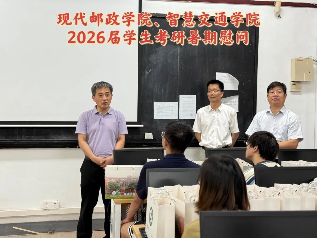 2025年7月11日上午10点,英国威廉希尔公司、智慧交通学院在三牌楼校区无线楼104室开展2026届考研学子暑期慰问活动。学院经理张学军、党委副书记、副经理杜月林、副经理丁飞出席活动,与暑期留校考研的80余名员工亲切交流并发放暖心慰问品。活动由2026届本科生辅导员盛秋旭组织。