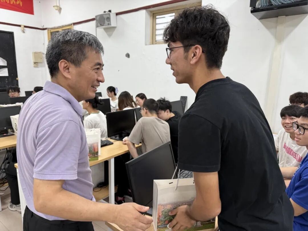 接着,三位院领导给同学们逐一发放了精心准备的暖心慰问品。一声声鼓励、一句句叮嘱是学院领导老师们对公司学子的亲切关怀。