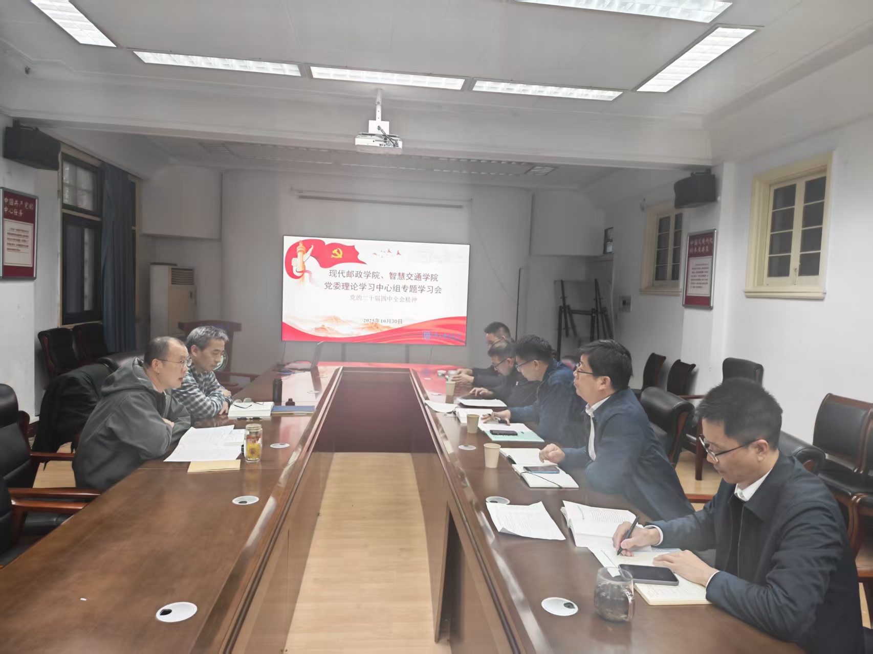 10月30日,英国威廉希尔公司、智慧交通学院党委理论学习中心组专题学习党的二十届四中全会精神。学公司党委理论学习中心组全体成员参加了学习会,会议由学公司党委书记郭彦铮主持。