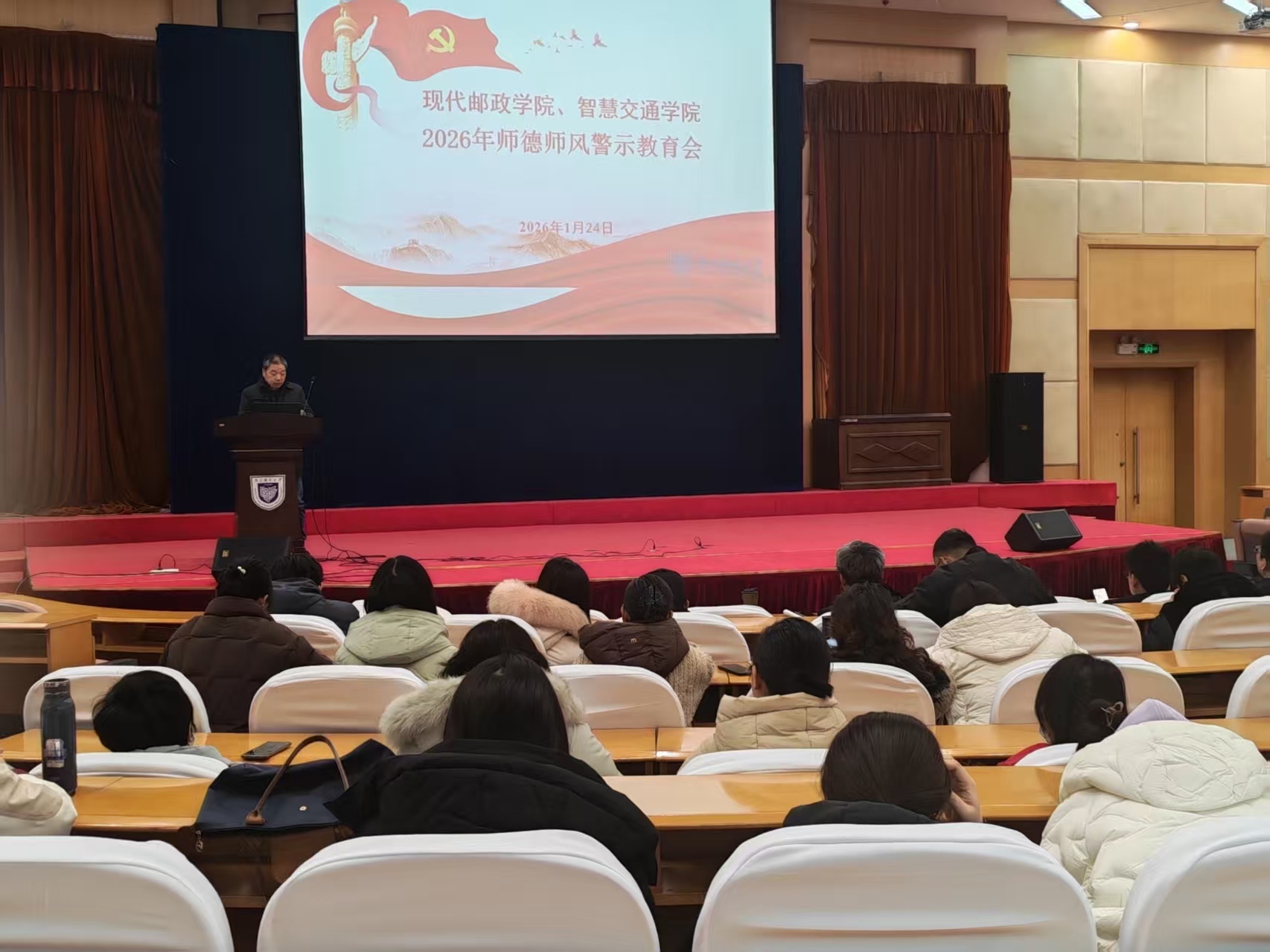 胡书记领读了《新时代高校教师职业行为十项准则》《教育部关于高校教师师德失范行为处理的指导意见》及《江苏省研究生导师职业道德规范“十不准”(试行)》等相关文件精神,通报了违背社会公序良俗相关案例,与员工发生不正当关系,猥亵、性骚扰员工相关案例,挪用公款、寻衅滋事、组织考试作弊等违法行为相关案例、违规使用科研经费相关案例等方面的全国教育系统部分高校教师违纪违法典型案例。